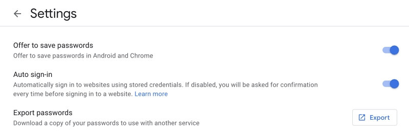 يمكنك أيضًا تمكينه من حساب Google الخاص بك. انتقل إلى passwords.google.com ، ثم انقر على رمز الترس ‘خيارات كلمات المرور’ في الجزء العلوي الأيسر من الصفحة. تأكد من تمكين ‘عرض حفظ كلمات المرور’.