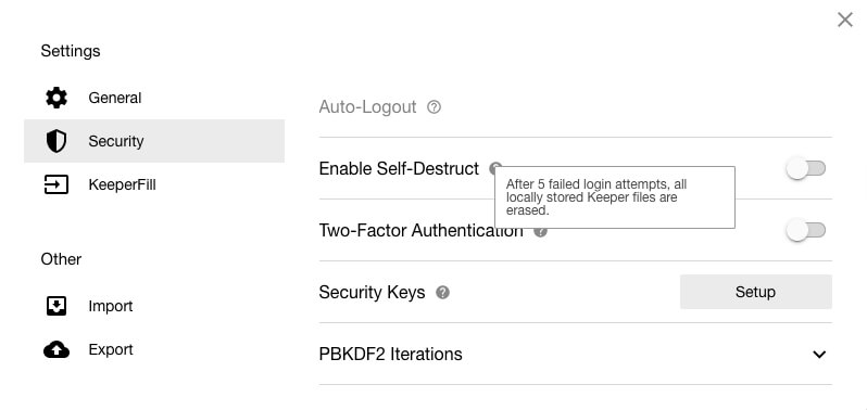如果这与您有关,您可以打开应用程序的自毁功能。 五次登录尝试后,您的所有 Keeper 文件都将被删除。