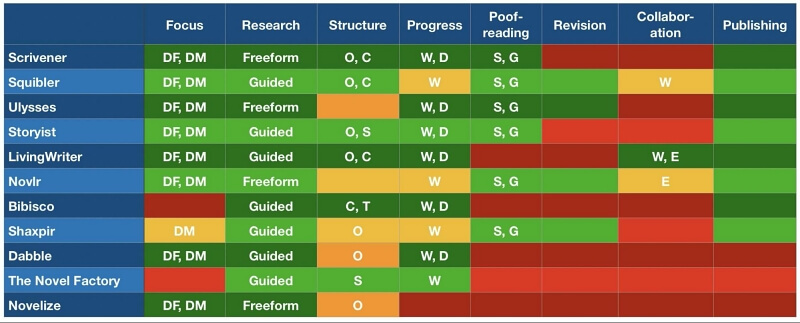Här är några saker som vi tar hänsyn till när vi utvärderar den bästa mjukvaran och apparna för romanskrivande.